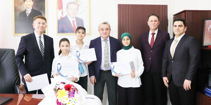 Bozüyük Kaymakamı Adem Öztürk, İlçe Milli Eğitim Müdürü Servet Çetinkaya ile birlikte TÜBİTAK 2204-B Ortaokul Öğrencileri Araştırma Projeleri Yarışmasında, Matematik alanında hazırladıkları proje ile bölge birincisi olarak Türkiye Finaline katılmaya hak kazanan Bozüyük Bilim ve Sanat Merkezi öğrencileri Süheyla Gençer, Zülal Kocabey, Arya Derin Sert, danışman öğretmenleri Abdurrahman Günay ve okul müdürü Salim Açıkgöz’ü kabul ederek tebrik etti ve Türkiye Finalinde başarılar diledi.