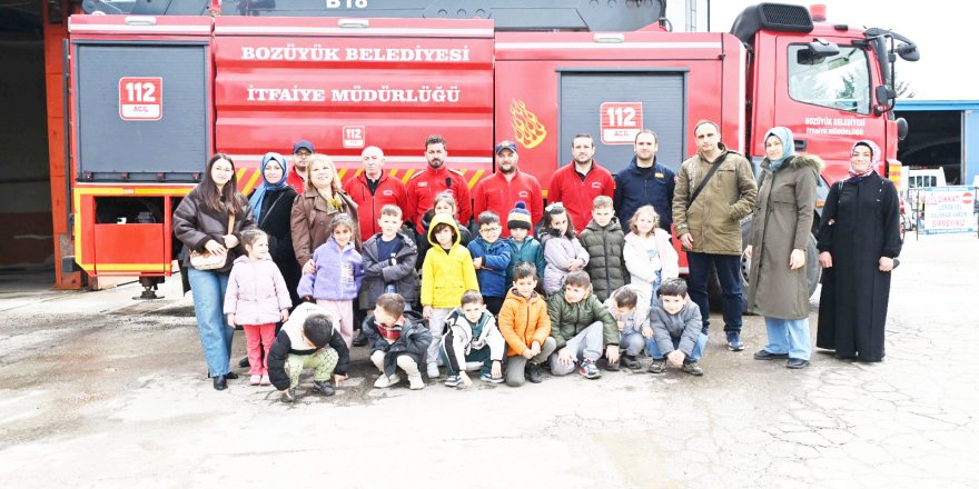 Bozüyük'te İtfaiye Müdürlüğü ekiplerince Bozüyük Hoca Ahmet Yesevi İlkokulu ana sınıfı öğrencilerine temel yangın eğitimi verildi. İtfaiye Müdürlüğü bahçesinde gerçekleştirilen eğitimde öğrencilere yangına karşı alınacak önlemler, yangın çeşitleri ve olası yangın durumunda yapılması gerekenler hakkında önemli bilgiler verildi. Yangın eğitiminin sonunda ise minik öğrenciler su hortumunu kullanarak pratik yaptı. Verimli geçen eğitimin ardından itfaiye personeli, öğrencilere kek ve meyve suyu ikram etti.